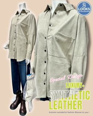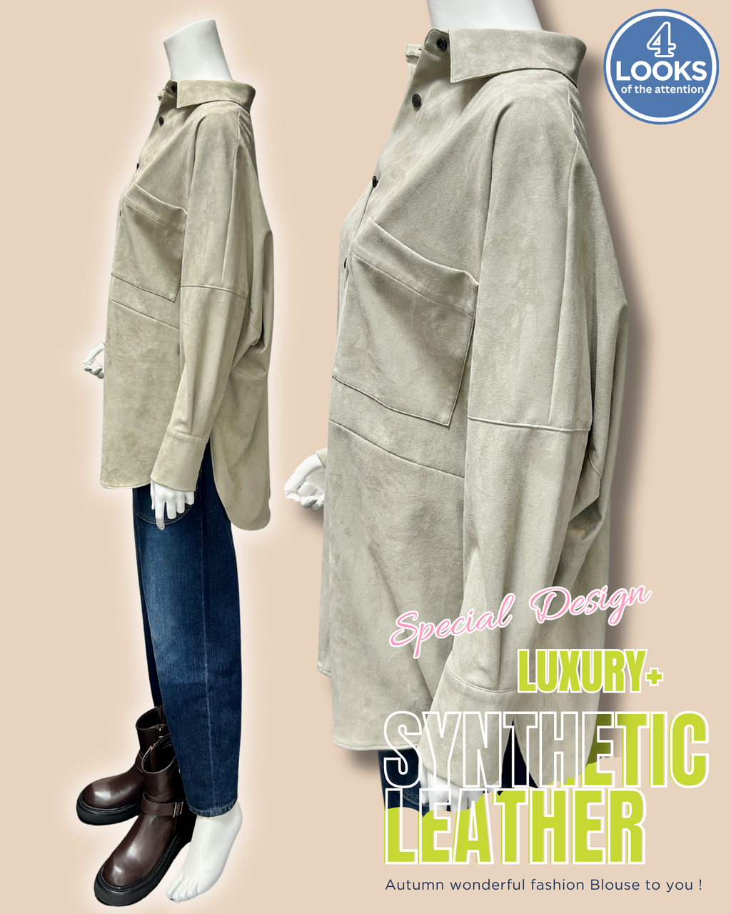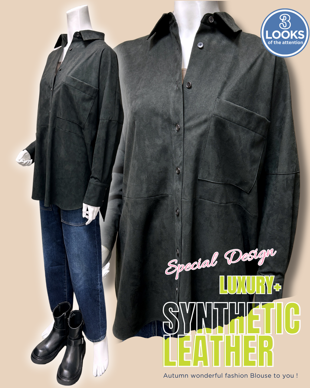 質の高い人工皮革の技が冴えるシャツブラウス!💖