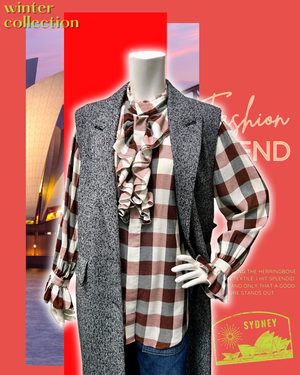 レッドのネル風ブロックチェックは見栄えする洗練柄・・また “ テクニックフリルもフェミニン度満点の魅力的なデザインディティール ” ですね!![]()