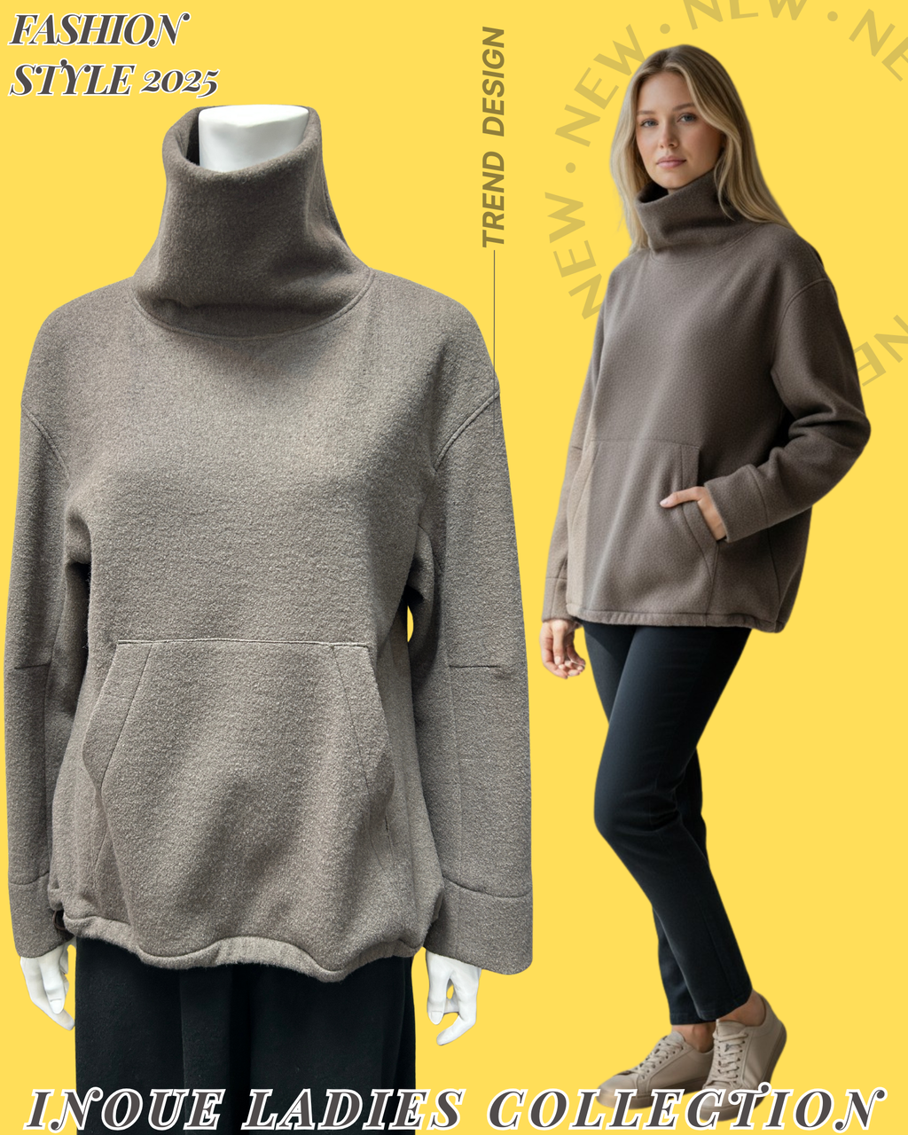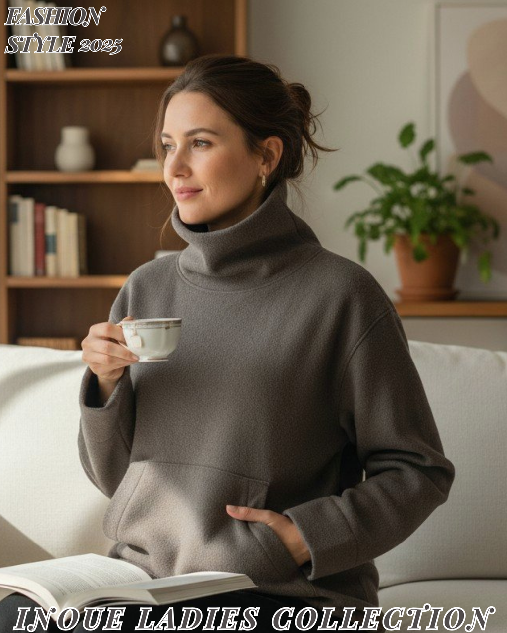 フロントトポケットとスタンドカラーがカジュアルフェミニンな素敵なプルオーバーですね1・・“ 大人好みのグレージュカラーと、ゆるキレイなオシャレフォルム ” は、裾のドローコードで形を自由に調節可能 することができますよ!・・・
