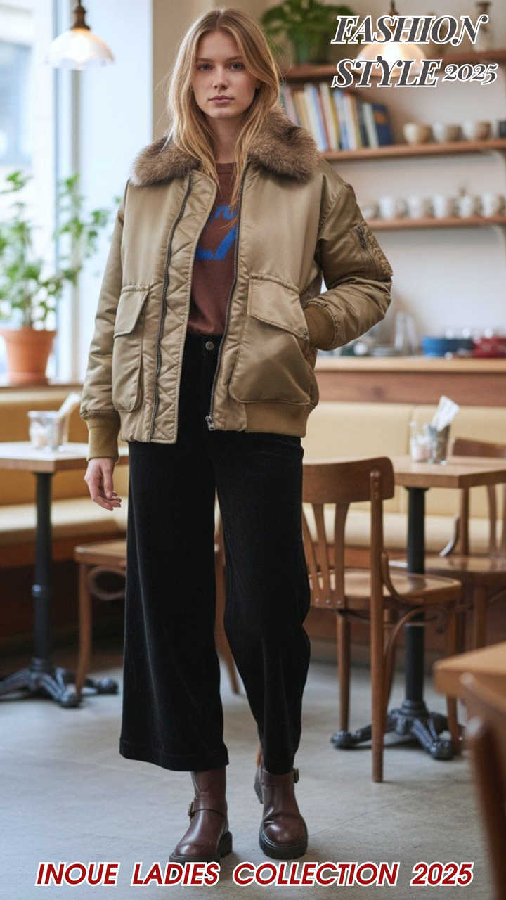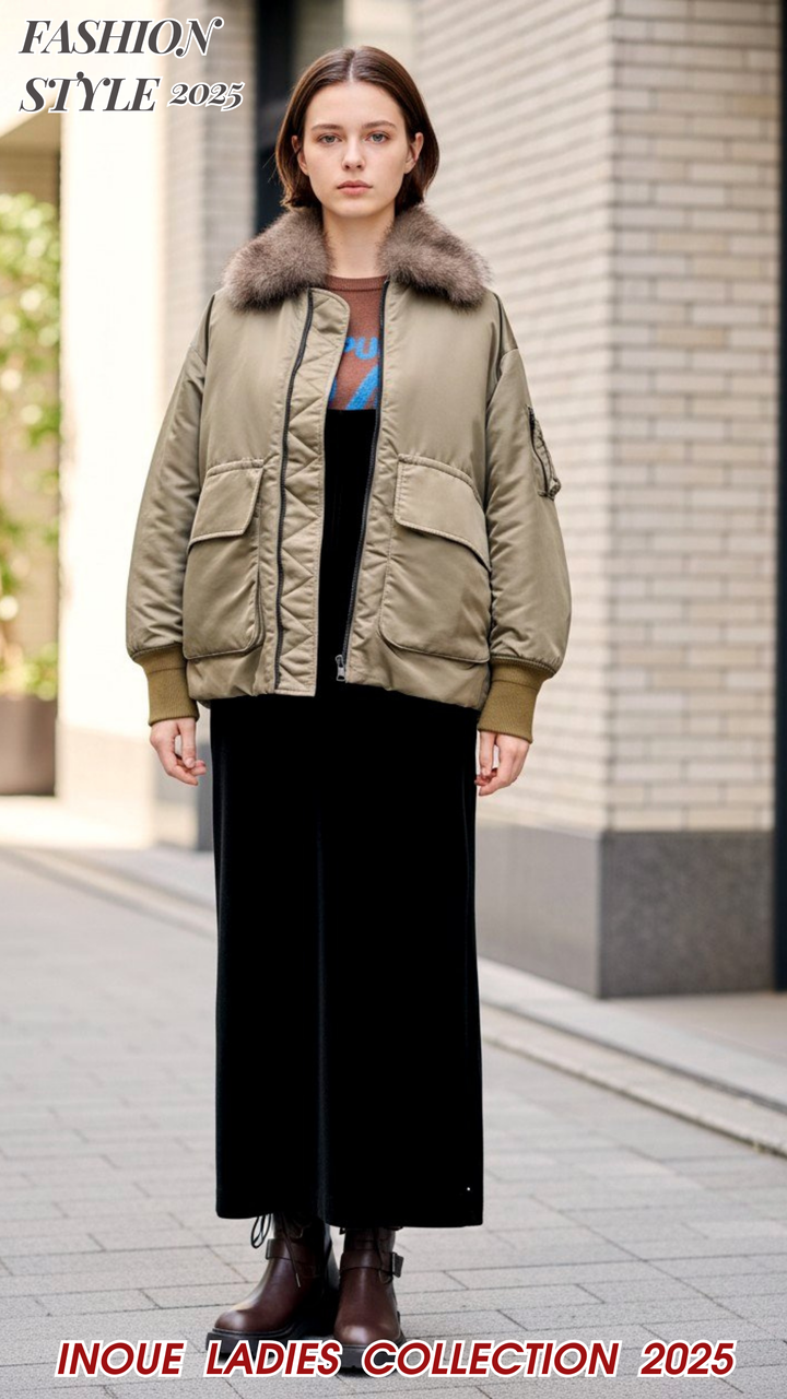 今回は、美しい光沢感とフェミニンなディティールを添えたパイロットブルゾンに